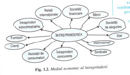 Pentru a-și realiza activitatea, fiecare intreprindere iși creaza și dezvolta un sistem de relații cu numeroși agenți economici cu care trebuie sa fie in contact permanent sau periodic spre a-și asigura aprovizionarea, vanzarea produselor, indeplinirea unor obligații administrative și de alta natura locale naționale și internaționale etc. Acest sistem de relații formeaza mediul economic al intreprinderii.