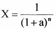 O unitate monetara disponibila pentru un numar de 'n' ani va reprezenta in prezent, in conditiile unei rate de actualizare 'a' acea suma 'x' care multiplicata cu factorul (1 + a) la puterea 'n' ne va da unitatea: