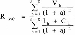 Sub raportul eficientei economice a proiectului de investitie, poate fi acceptat numai in cazul in care Rv/c > 1- Aceasta relatie exprima legea fundamentala a activitatii economice care presupune ca in orice asemenea activitate trebuie sa se recupereze integral cheltuielile efectuate si sa se realizeze un anumit profit pentru investitor si societate.