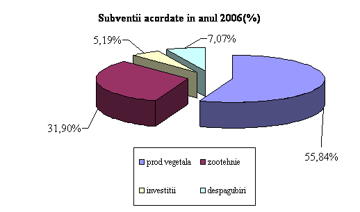 Pe cele doua sectoare vegetal si zootehnie, situatia se prezinta astfel: sustinerea bugetara a sectorului vegetal a reprezentat 1,5% din totalul sprijinului acordat de MAPDR in anul 2006 si in anul 2007, iar cea acordata sectorului zootehnic a reprezentant 2,4% in anul 2006 si 3,1% in anul 2007.