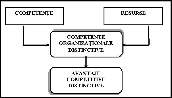 Felul cum aceste resurse sunt asamblate, coordonate, sincronizate si puse in miscare la nivelul firmei tine de competentele organizatiei, iar daca prin rezultatul obtinut competitivitatea firmei creste inseamna ca aceasta dispune de competente organizationale distinctive. Competentele organizationale distinctive fac posibila existenta avantajelor competitive distinctive.