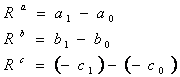 Daca luam ca exemplu de balanta exprimarea unui rezultat ce reflecta volumul vanzarilor dat de relatia R = Ra + Rb - Rc, atunci influenta fiecarui factor asupra rezultatului poate fi exprimata prin reflectarea abaterilor urmatoare: