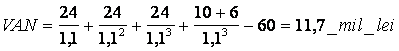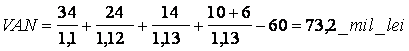 La o rata de actualizare de 10% (in termeni reali si fara risc), valoarea actuala neta (VAN) a proiectului de investitii va fi de: