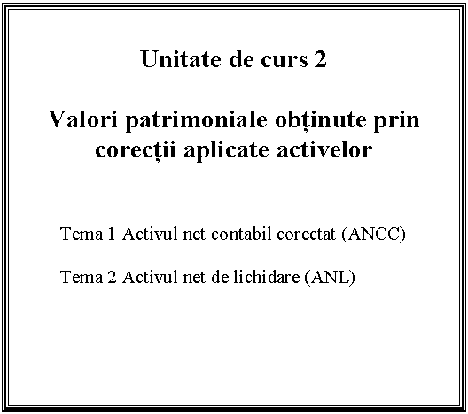 Tema 2: Fundamentul valorilor patrimoniale ale afacerii