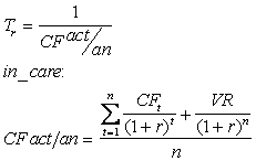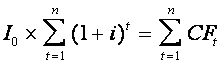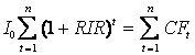 In determinarea lor se porneste de la ipoteza ca veniturile viitoare (CFt) pot fi reinvestite constant la aceasta RIR, care urmeaza sa se determine din relatia initiala a investitiei pe piata monetara: