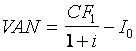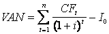 Valoarea actualizata neta (VAN) se determina ca diferenta intre fluxurile de trezorerie viitoare si actualizate la rata dobanzii de piata, respectiv valoarea lor actuala, pe de o parte si capitalul investitiei pe de alta parte. Regula VAN porneste de la ipoteza de piata monetara nesaturata. Capitalurile (I) pot fi oricand reinvestite pe piata monetara, la rata dobanzii de piata (i), pentru a obtine fluxuri de trezorerie viitoare (CF):