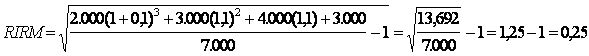 In cele din urma, RIRM este raportul intre valoarea finala a investitiei, rezultata din capitalizarea veniturilor viitoare si valoarea initiala a investitiei, respectiv capitalul alocat in investitia analizata.
