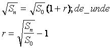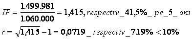 Indicele de probabilitate anual al investitiei se determina pe baza formulei dobanzii compuse, prin extragerea radacinii de ordin 'n' din ambele parti ale respectivei relatii de calcul.