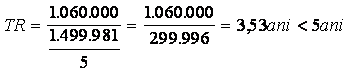 Termenul de recuperare (TR) a sumei alocate pentru investitii exprima numarul de ani de recuperare, prin cash-flow-urile medii anuale actualizate (CF act/an) a capitalului investit(I) si se determina conform relatiei: