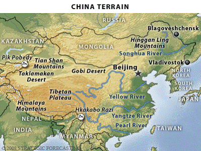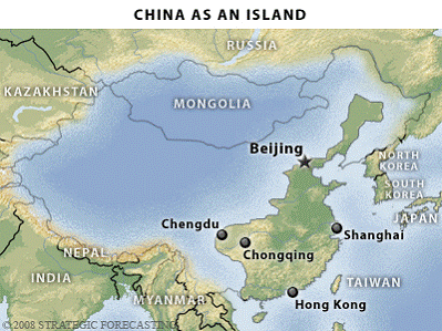 China's primary geopolitical issue is this: For it to develop it must engage in international trade. If it does that, it must use its coastal cities as an interface with the world. When that happens, the coastal cities and the surrounding region become increasingly wealthy. The influence of foreigners over this region increases and the interests of foreigners and the coastal Chinese converge and begin competing with the interests of the central government. China is constantly challenged by the problem of how to avoid this outcome while engaging in international trade