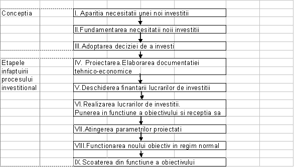 Realizarea de proiecte sau programe de investitii conduce, in principal, la cresterea stocului de capital fix. Ca atare investitiile constituie instrumentul principal de realizare a modernizarii economice, prin crearea de noi structuri, mai performante, in acord cu optiunile strategice, de perspectiva ale societatii.