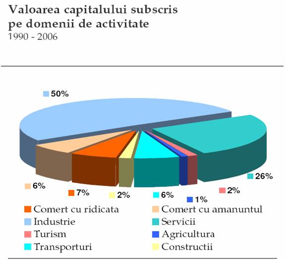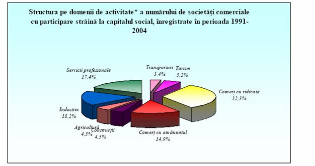 - comert, 97 proiecte cu o valoare angajata de 737 milioane USD, reprezentand 11,13% din totalul investitiilor;