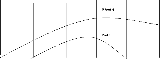 c. Pozitionarea produsului. Pozitionarea produsului reprezinta modul in care vad clientii produsul, in raport de cele ale concurentilor. Ea este determinata de caracteristicile acestuia. In general, un produs are urmatoarele stadii pe durata ciclului sau de viata: introducere, crestere, maturitate, declin. Ciclul de viata al produsului (fig. 1) reflecta aceste stadii de crestere, iar masuratorile permit conducerii sa ia decizia continuarii sau nu a vinderii produselor.