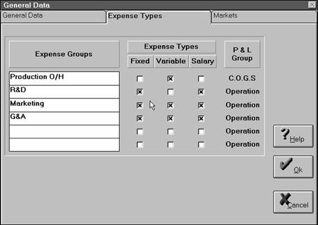 Introduceti numele grupelor de cheltuieli daca doriti distribuirea cheltuielilor in cadrul bugetului. De exemplu puteti utiliza un departament sau o categorie ca grupa de cheltuieli, cum ar fi departamentul marketing sau categoria deplasari. Fiecare grupa de cheltuieli apare pe o linie individuala in declaratia de profituri / pierderi. Puteti deschide pana la sase grupe de cheltuieli continand fiecare pana la treizeci de elemente.