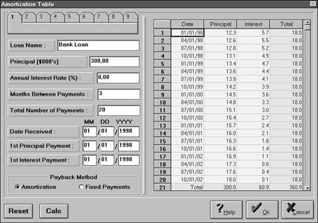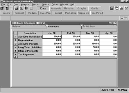 Notati ca valoarea introdusa in linia Receivables in ianuarie 1998 si februarie 1998 egaleaza cei 500.000 introdusi la Receivables in Previous Balance Sheet. Aceste valori sunt introduse aici pentru a arata cand trebuie receptionata valoarea din balanta. In exemplul de mai sus aceasta inseamna ca jumatate din suma este asteptata in prima luna iar cealalta jumatate in cea de‑a doua luna.