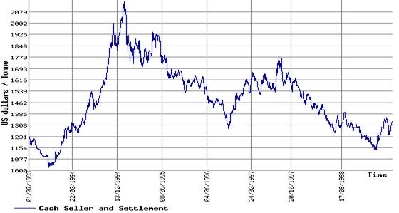 - Natura activitatii si pozitia pe piata. Alro Slatina este singurul producator de aluminiu primar din Romania, cel mai mare producator de Aluminiu din Europa de Est din punct de vedere al capacitatii instalate si al 7 - lea producator din Europa. Principalii concurenti pe piata europeana, acolo unde Alro isi desface produsele cu preponderenta, sunt: Pechiney Franta, Hydro Aluminium Norvegia, VAW Germania, ALCOA SUA, ALCAN Canada, Bratsk Rusia, concurenti nu in domeniul calitatii, domeniu in care Alro are deja un foarte bun renume, ci in acela al pretului de cost pe tona de produs. Calitatea produselor Alro a primit recunoasterea pietei internationale, produsele sale fiind cotate la Bursa de Metale de la Londra (LME). Evolutia descrescatoare a pretului international la aluminiu din ultimii ani poate constitui un dezavantaj pentru activitatea societatii. Astfel, evolutia contractului LME spot pentru aluminiu intre 1 iulie 1993 si 16 iunie 1999 s-a prezentat astfel: