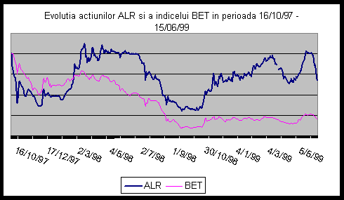 Actiunile Alro au cea mai mare capitalizare din randul actiunilor cotate la bursa, inregistrand o pondere de 17% (pentru 15/06/00) in capitalizarea totala a bursei de valori. De asemenea, actiunile Alro inregistreaza cea mai mare pondere in cadrul indicelui BET (aproximativ 60%). Aceasta inseamna ca evolutia actiunilor Alro influenteaza intr-o masura destul de mare evolutia generala a pietei si a indicilor bursieri. Acest lucru trebuie retinut de catre speculatorii pe piata futures a contractelor BET de la Bursa Monetar-Financiar si de Marfuri Sibiu. Studierea si prognozarea exacta a evolutiei actiunilor Alro (si, intr-o masura mai mica, a urmatoarelor clasate din punct de vedere al ponderii in indicele BET - Dacia, Terapia) poate aduce castiguri acestor speculatori.