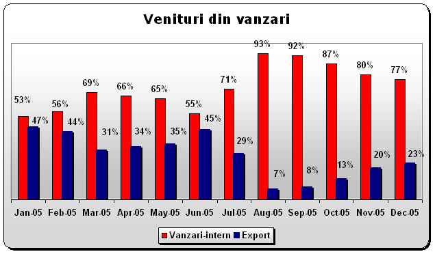 Din punct de vedere al destinatiei produselor rezultate pentru anul 2005, s-a urmarit realizarea politicii de expansiune regionala a Groupului (63%-piata interna, 36%-piata externa), cu o medie lunara de 185.000 tone/105.000 tone.