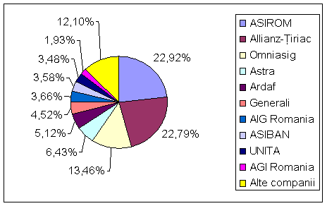 Fata de sfarsitul anului 2001, componenta topului primelor 10 companii - asigurari generale s-a modificat foarte putin. Compania Grup As, ocupanta locului 6 in 2001 a parasit topul ca urmare a situatiei sale speciale care a condus la retragerea autorizatiei de functionare. Companiile Generali Asigurari, Asiban, Unita si AIG Romania au urcat cu cate o pozitie in clasament, in timp ce pozitia a 10-a a revenit unei noi intrate in top10, AGI Romania. Totodata, trebuie remarcat faptul ca aproximativ 85% din volumul de prime brute pentru asigurari generale este detinut de ocupantele primelor 10 pozitii din top.