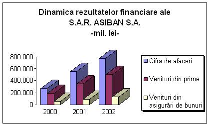 In anul 2002 S.A.R. ASIBAN S.A. a realizat o cifra de afaceri de 775,225 miliarde lei, iar veniturile din primele de asigurare incasate ajungand la 501,10 miliarde lei. Dintre acestea volumul primelor din asigurari de bunuri depaseste 131 miliarde lei.
