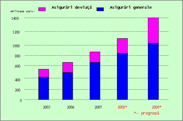 Pe fondul acestor evolutii, se prognozeaza ca piata asigurarilor va consemna in 2008 si 2009 cresteri anuale de peste 20%, in euro, cu o dinamica mai buna a asigurarilor de viata (graficul nr. 1).