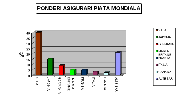 In 1988 piata asigurarilor era dominata doar de cateva tari dezvoltate economic. Astfel 66,3% din totalul mondial al primelor la asigurarile de bunuri si raspundere civila, respectiv 69,4% din totalul primelor la asigurarile de viata reveneau SUA, Japoniei si Germaniei. Aceste tari, la care se adauga Marea Britanie, Franta, Italia si Canada, adica cele sapte mari puteri industrializate ale lumii, realizau impreuna 81,4% din primele mondiale la asigurarile de bunuri si raspundere civila, respectiv 83% la cele de viata.