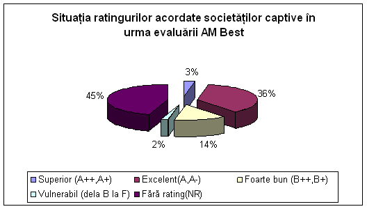 La sfarsitul lunii martie 2003 A.M.Best avea in evidenta pentru efectuarea evaluarii 368 societati captive de asigurari ,pentru care a acordat urmatoarele ratinguri: