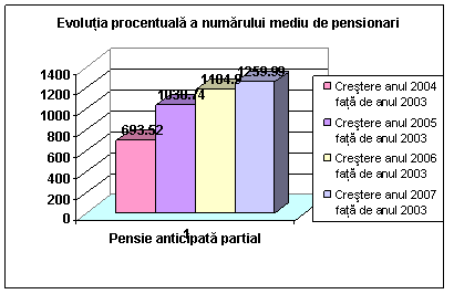 Aceeasi crestere a avut-o si pensia anticipata partial care in comparatie cu anul 2003 a crescut in proportie de aproape 20% dupa cum urmeaza: