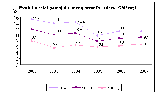 Rata somajului la sfarsitul anului 2007 era de 9,1%, calculata in raport cu populatia activa civila, situatia fiind urmatoarea: