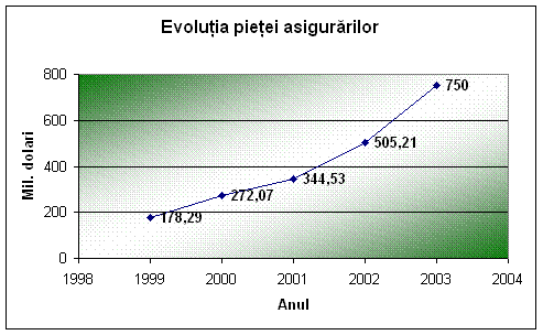 Piata romaneasca a asigurarilor a inregistrat o evolutie spectaculoasa in ultimii ani, o crestere net superioara ritmului de crestere economica inregistrata. Volumul total de prime incasate a ajuns in 2002 la 471 milioane euro ( din care 352 milioane euro incasati din prime pentru asigurarile generale si 118,7 milioane euro asigurari de viata ). Anul 2002 a reprezentat primul an in care gradul de penetrare a asigurarilor in economie a fost supraunitar, ajungand la 1,09%, desigur inca departe de nivelul inregistrat in pietele mature( in medie 8% in tarile UE si 3-5% in tarile Europei Centrale). Densitatea asigurarilor a crescut in 2002 la 21,7 euro/locuitor fata de 16 euro/locuitor in 2001. Ponderea asigurarilor de viata a crescut in fiecare an, ajungand la 25% in 2002 fata de 8,3% in 1998. Tendinta aceasta va continua si in anii urmatori, ca urmare a maturizarii pietei si cresterii nevoii de protectie si economisire .