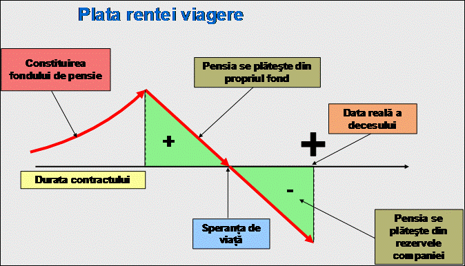 Odata cu pensionarea are loc o scadere brusca a veniturilor, de la valoarea salariului din momentul pensionarii pana la nivelul pensiei. Din acel moment, individul este pus in ipostaza de a-si limita nivelul de trai la aceasta valoare, sau de a suplimenta veniturile cu rezervele acumulate in timpul perioadei active. Apare insa o mare problema, anume cresterea cheltuielilor odata cu inaintarea in varsta, datorita subrezirii sanatatii, tratamentelor si necesarului de proceduri medicale. Asa cum se vede si pe grafic, apare brusc o scadere a veniturilor, scadere care, pentru a nu se solda si cu o scadere a nivelului de trai, trebuie inlocuita cu ceva. Acest ceva poate fi reprezentat de rezervele personale sau de asigurarea de viata.