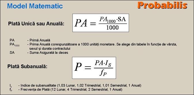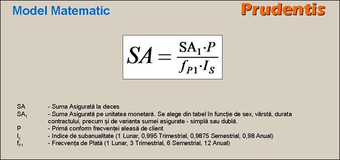 - in conformitate cu modul de plata a primei de asigurare, este determinata suma asigurata pentru a doua componenta a asigurarii de supravietuire si de deces (mixta de viata), luandu-se in calcul noua varsta de intrare in asigurare, durata asigurarii si prima de asigurare convenita;
