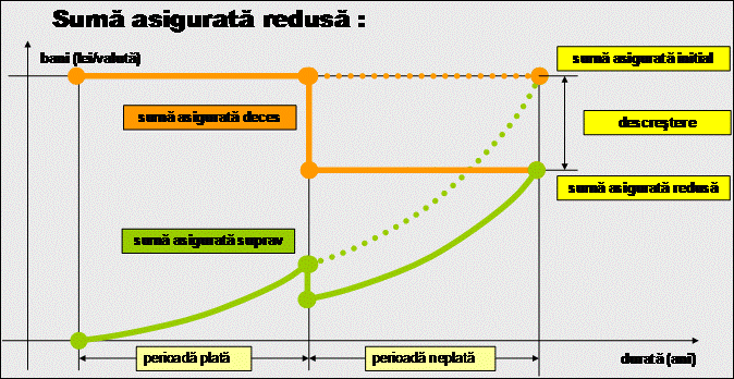 Daca considera necesar, clientul poate solicita micsorarea sumei de asigurare, platind insa aceeasi prima, ceea ce rezida in cresterea componentei de investitie si implicit a randamentului investitiei.