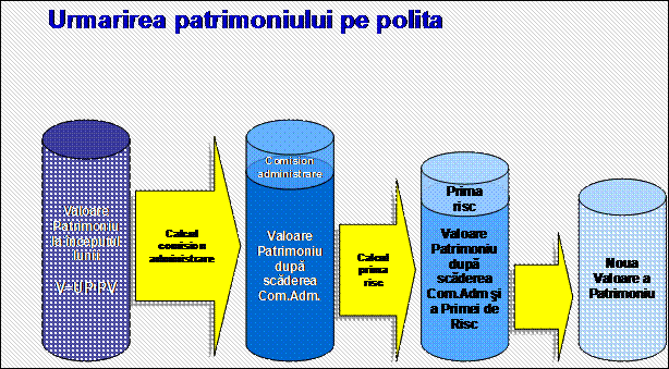 Deducerea comisionului de administrare. Comisionul de administrare se scade din valoarea patrimoniului astfel incat asiguratorul scade numarul corespunzator de unitati de patrimoniu din contul de depunere al politei in cota proportionala considerand valoarea patrimoniului pe polita la fiecare fond de investitii.