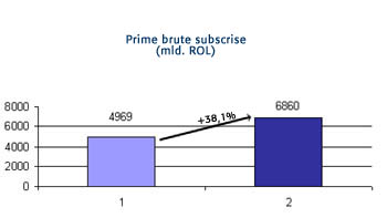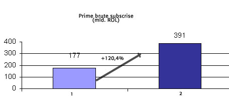 Veniturile din prime brute subscrise au evidentiat o crestere cu echivalentul a