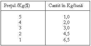Exemplu : Sa presupunem ca avem un bun oarecare X, a carei cerere individuala lunara la diferite preturi aratata astfel (tabelul 2.1):