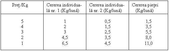 pentru bunul respectiv. Deci, cererea pietii este egala cu suma cererilor individuale.