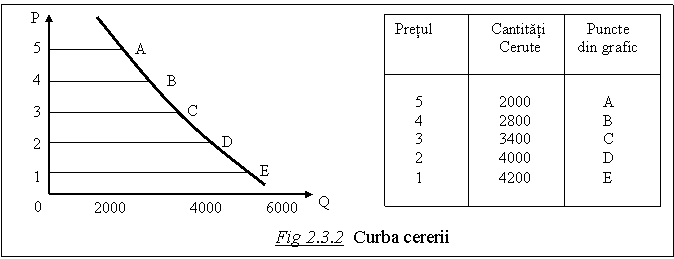 Relatia dintre pretul unitar al unui bun si cantitatea de bunuri ceruta intr-o anumita perioada de timp se poate reprezenta grafic, obtinindu-se curba cerer