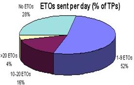 Serviciul ETOs' este folosit cu o frecventa mai mare de catre intreprinderile mijlocii si mari, de asemenea, comunicatiile prin e-mail, cu clientii lor si intre punctele comerciale. Aceste companii sunt satisfacute de evolutia bazei lor de clienti, atentia concentrandu-se acum pe training, emitere de certificate, licente