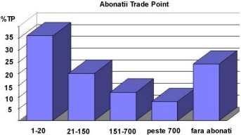 Deosebit de relevant pentru activitatea unui Trade Point este distinctia intre clienti si abonati. Abonatii reprezinta o categorie importanta deoarece, ei constituie o sursa de venituri regulata pentru punctele comerciale. Numarul acestora variaza mult: 24% dintre Trade Points nu au abonati de loc; altele au intre 1600 si chiar 18.000 abonati. Media abonatilor care s-au adresat punctelor comerciale este de 144/Trade Point.