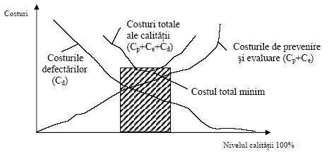Potrivit abordarii traditionale a corelatiei "costuri - calitate", costurile defectarilor interne si externe scad pe masura ce creste nivelul calitatii produselor, in timp ce costurile de prevenire si evaluare cresc.