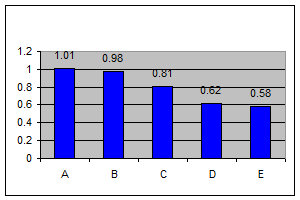 Dupǎ cum se observǎ, intreprinderea A are cea mai mare cotǎ de piatǎ (17,29%), fiind urmatǎ de intreprinderile B, C, D si E. Dacǎ se insumeazǎ cotele de piatǎ a acestor intreprinderi se observǎ cǎ ponderea pe care ele o ocupǎ in piata totalǎ a producǎtorilor de motociclete este de 69,37%.