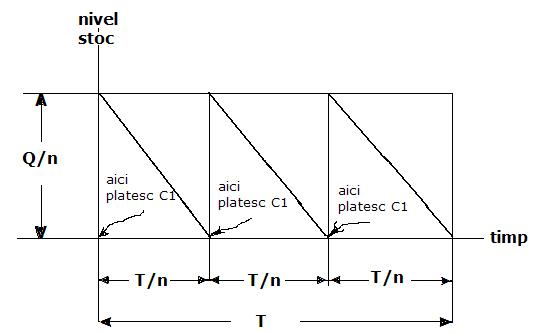 Vom nota prin "n" numarul de reaprovizionari : atunci evident ca fiecare reaprovizionare se face cu cantitatea Q /n , iar intervalul de timp dintre doua reaprovizionari va fi egal cu T /n .