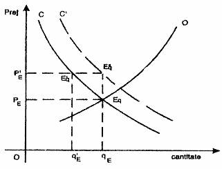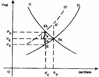 -Eq,E'q- punctele de echilibru: initial (Eq) si cel rezultat in urma introducerii (majorarii) impozitului (E'q);
