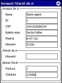 - Inceput/Sfarsit de zi cuprinde detaliile zilnice care se completeaza la inceputul si dupa terminarea activitatii.