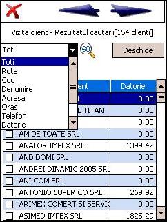 Nota: Clientii la care s-a inregistrat o vizita nereusita vor aparea, in lista de clienti, cu x in dreptul lor.