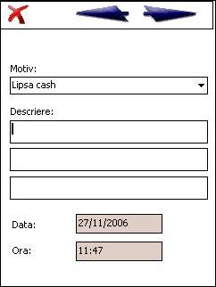 La sectiunea Motiv se poate selecta una din cauzele predefinite care a dus la esuarea vizitei (Lipsa cash, Magazin desfiintat.)