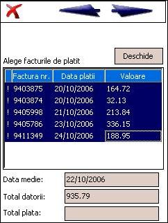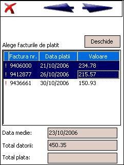 La rubrica Data medie apare media scadentelor facturilor selectate. La Total datorii apare suma totala de plata pentru stingerea facturilor selectate.