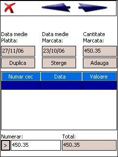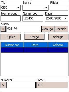 Se verifica apoi, pe banda albastra, corectitudinea datelor introduse (nr. cec, data scadenta, valoare).