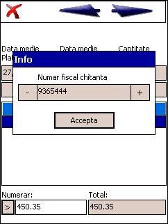 Se verifica daca Numarul fiscal chitanta coincide cu numarul inscris pe chitanta emisa catre client dupa care se apasa Accepta.